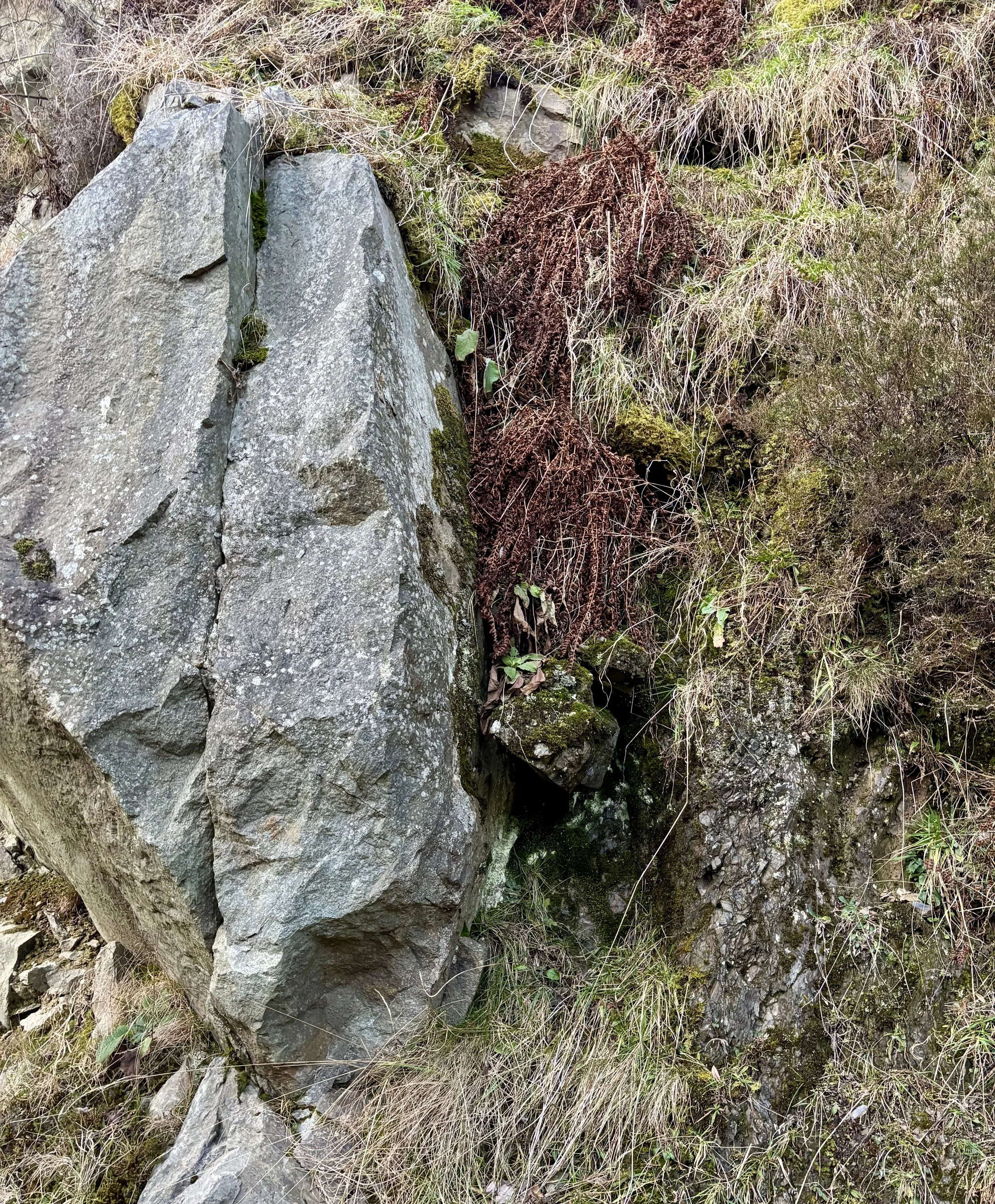 In very basic terms, what happened is that the granite forced its way through the rocks which were already there and, as you might expect when boiling hot liquid rock comes into contact with another rock, it ‘cooked’ the rocks it was close to. How close isn’t quite clear! In other words, that ‘cooking’ could have continued for many metres or hundreds of metres. But what it touches, it changes. So the flaky nature of the country BVG rock could be what has happened through metamorphosis due to the granite’s intrusion (or may have happened earlier).